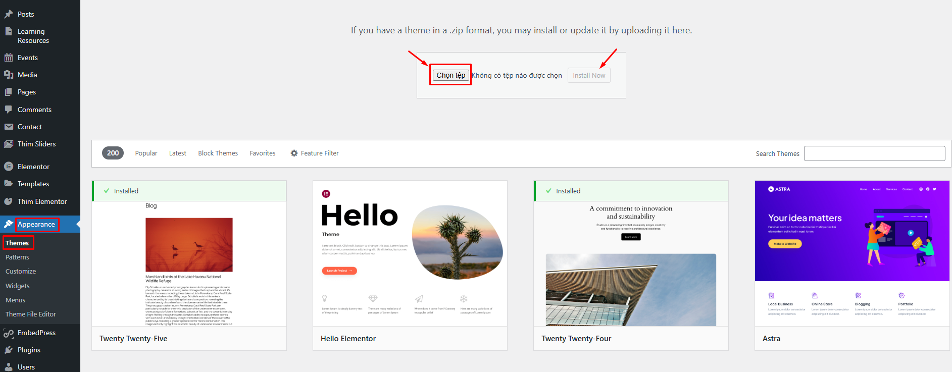 Step 3. Browse the akademic.zip file on your computer and click Install Now.