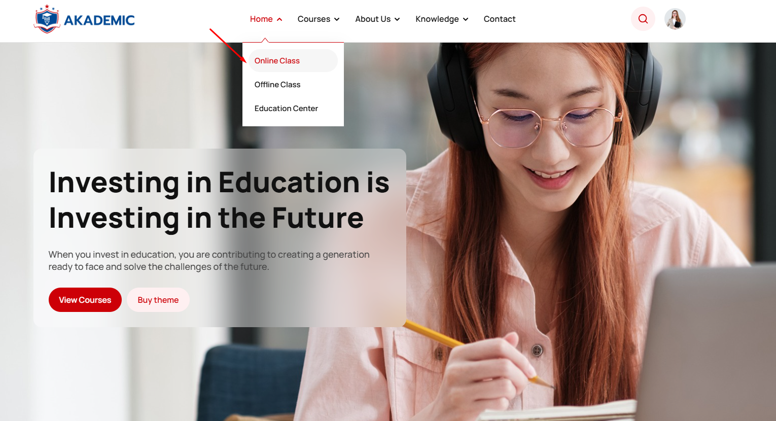 You can also change the display interface for the home page with 3 available pages: Demo – Online Class, Demo – Offline Class and Demo – Education Center